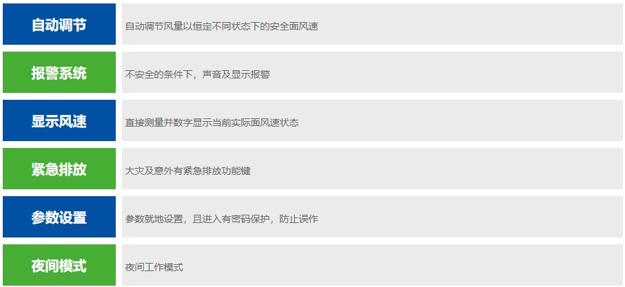 自動調(diào)節(jié):自動調(diào)節(jié)風量以恒定不同狀態(tài)下的安全面風速